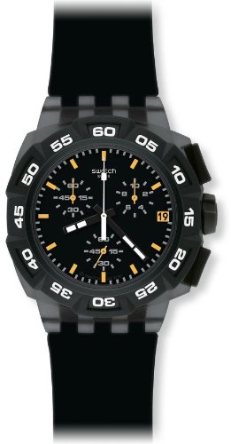 Black rubber strap. Plastic case. Black dial. Chronograph. Swiss quartz movement. Case 42mm. Water Resistance 30 meters. Swiss quartz movement Case diameter: 44 mm Chronograph watch, plastic case Scratch resistant plastic Water-resistant to 30 meters(99 feet) Swatch Men's SUIB414 Rubber Analog with Black Dial Watch Do not Miss!! Black rubber strap. Plastic case. Black dial. Chronograph. Swiss quartz movement. Case 42mm. Water Resistance 30 meters. Swiss quartz movement Case diameter: 44 mm Chronograph watch, plastic case Scratch resistant plastic Water-resistant to 30 meters(99 feet) ... Swatch Men's SUIB414 Rubber Analog with Black Dial Watch